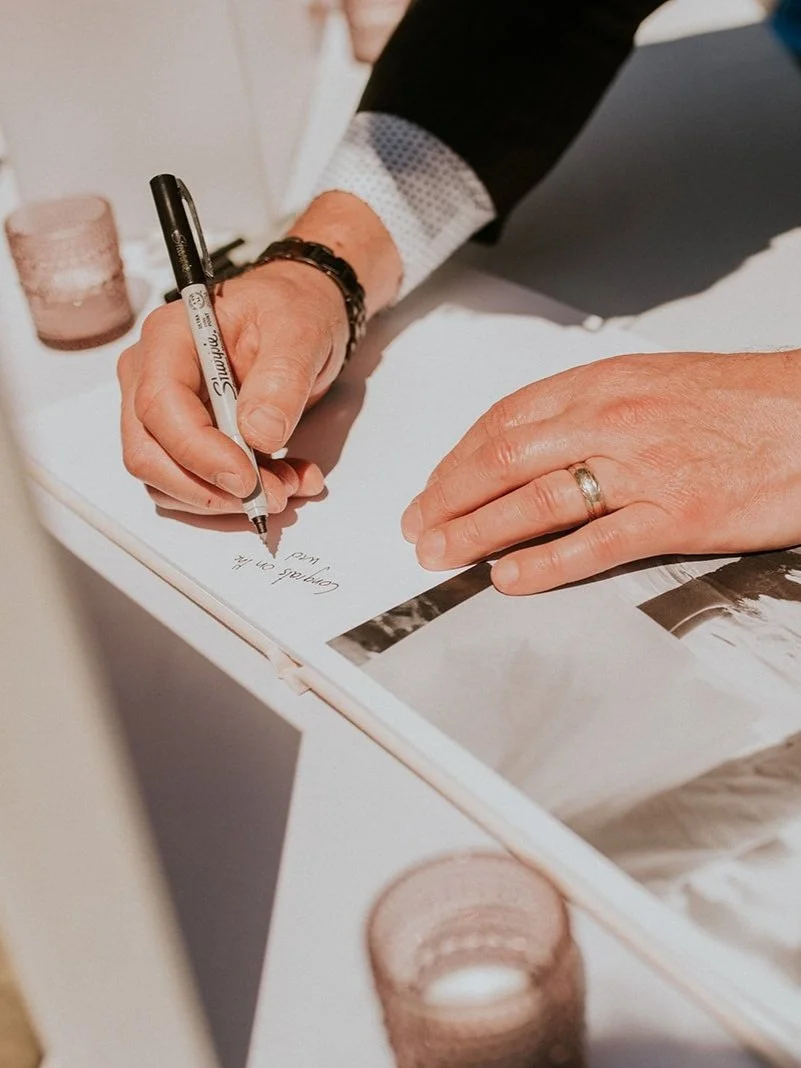 Vows: Whether you're writing your own vows or reciting traditional ones, make sure they are written down somewhere—whether on a beautiful card, in a journal, or printed on elegant paper. Some couples opt to have their vows displayed on a wooden sign or in a keepsake box after the ceremony.